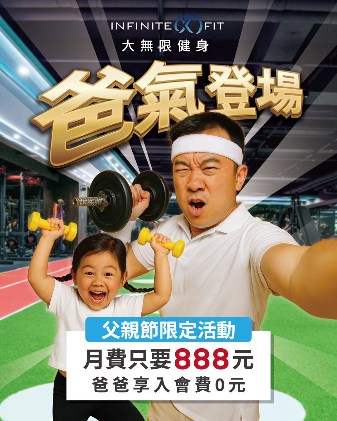 #父親節 #爸氣登場 #健身送健康 #月費888 #限時限量 #大無限健身 |